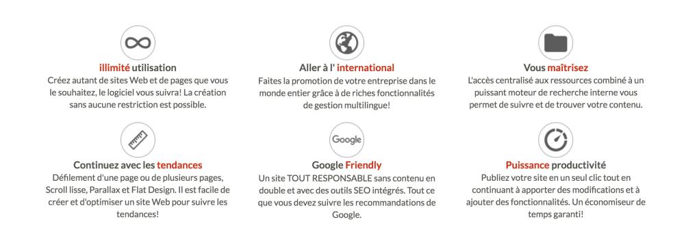 Les fonctionnalités abondantes du logiciel sont conçues pour rendre la création de sites Web facile.
